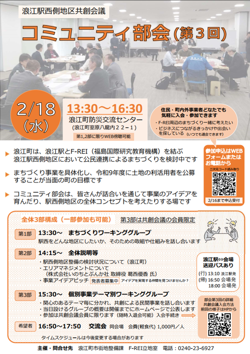 3. 浪江駅西側地区共創会議コミュニティ部会(第3回)参加受付開始【2/18開催】